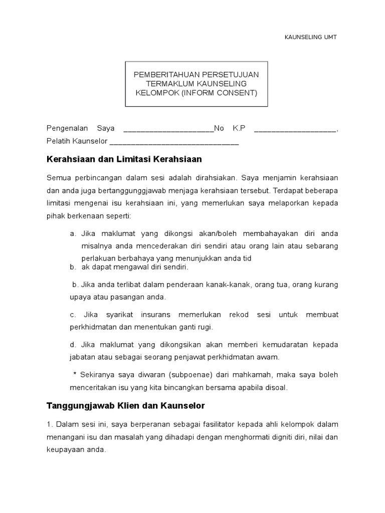 Pemberitahuan Persetujuan Termaklum Kaunseling Kelompok Pdf